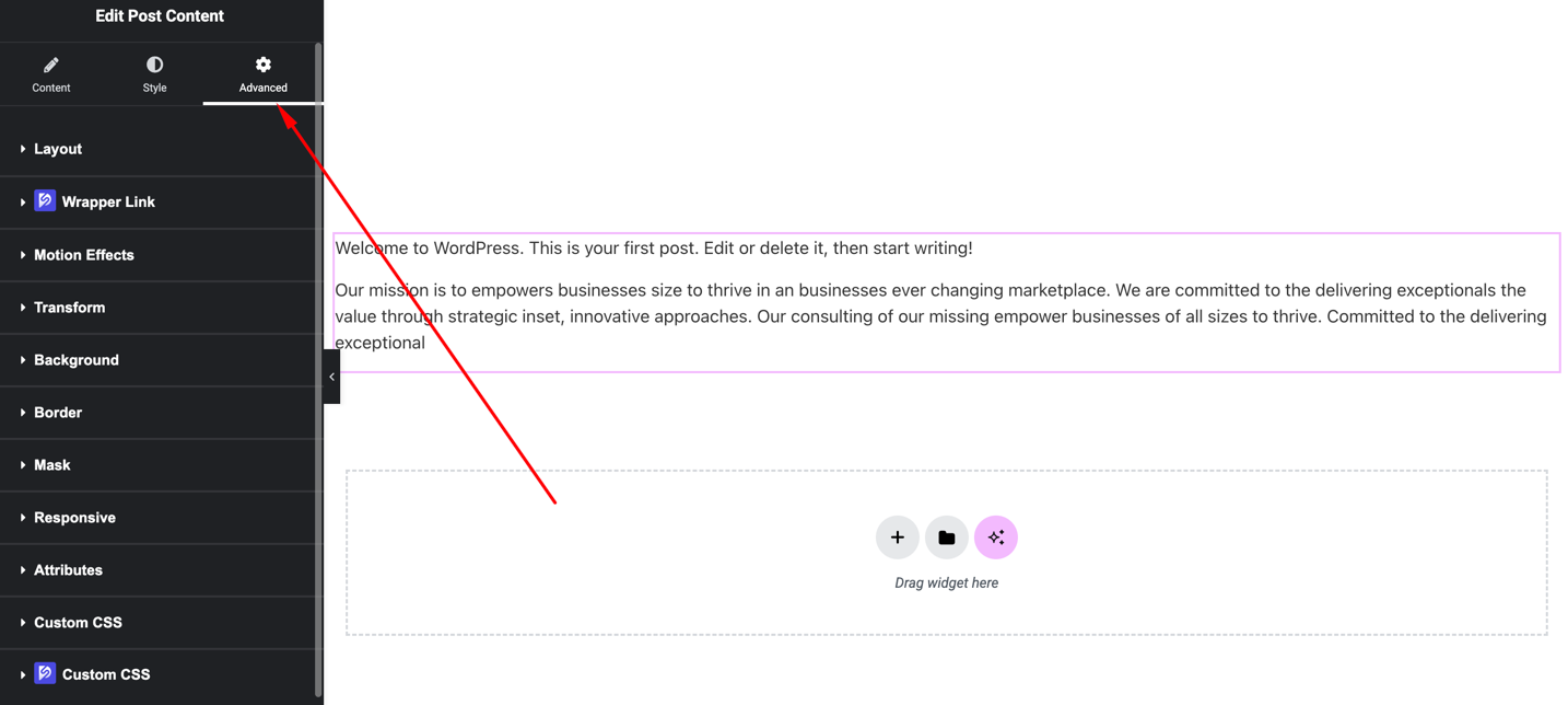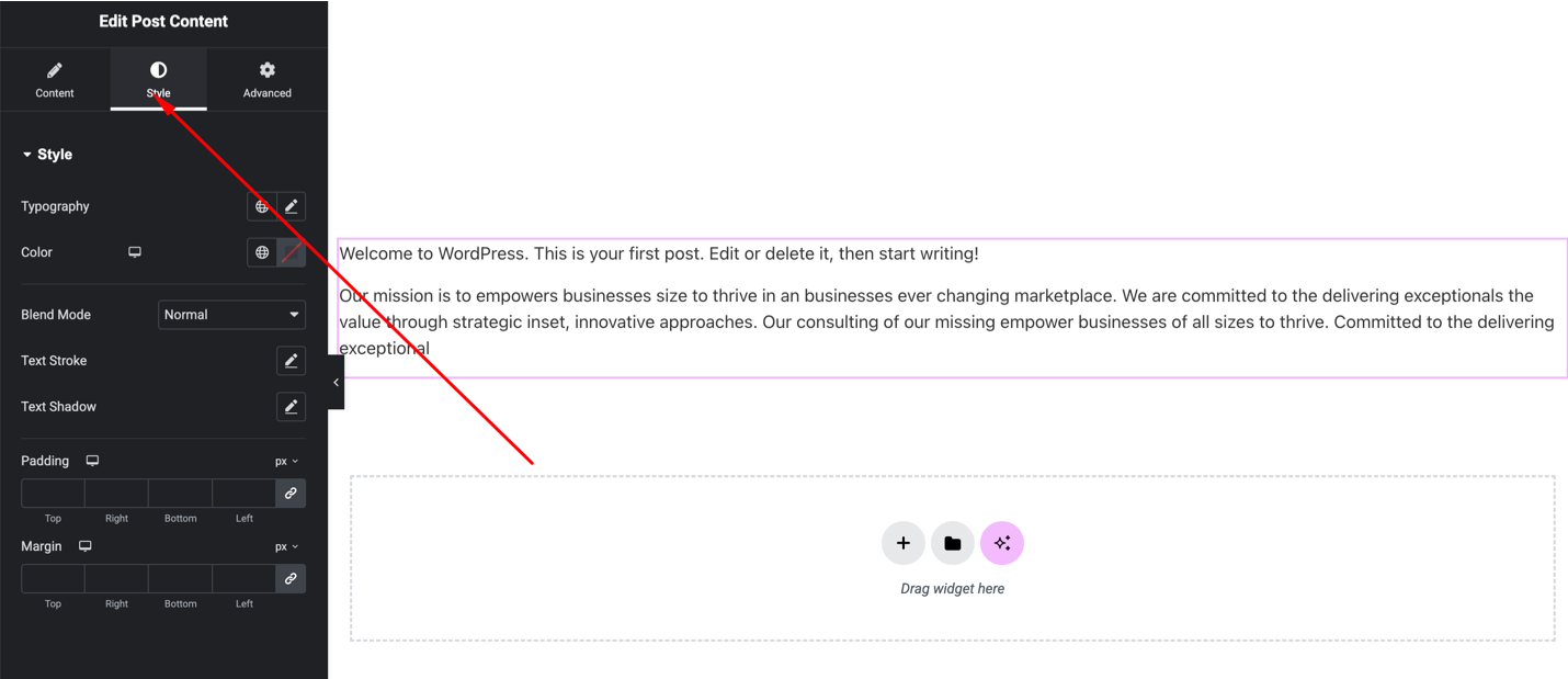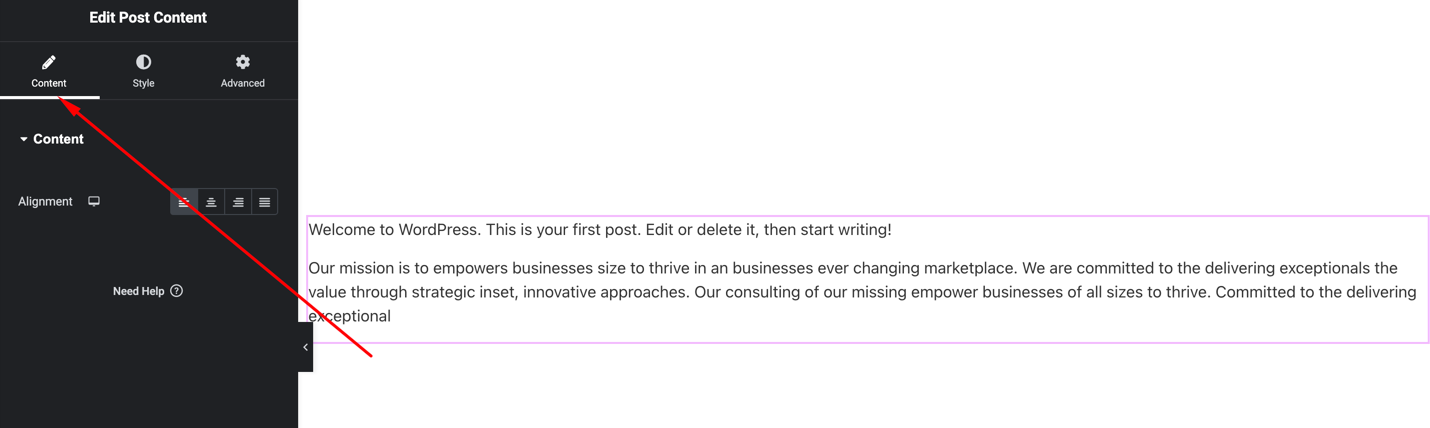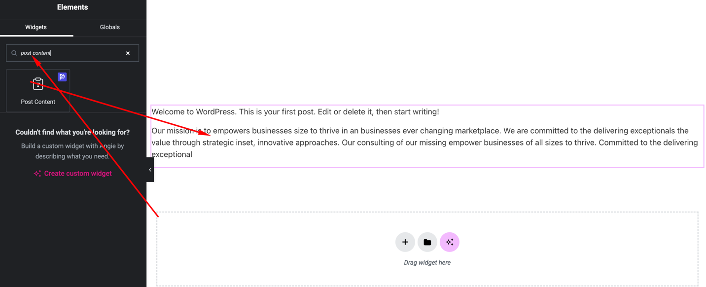 The Post Content widget is fully dynamic and automatically loads the content from the current post or page.