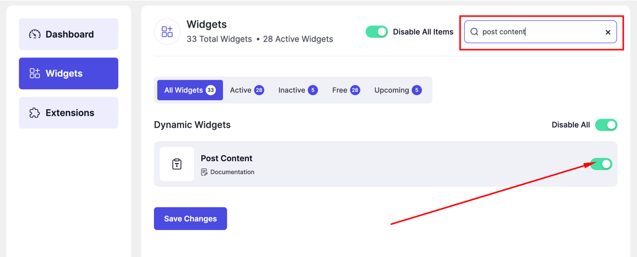 The Post Content widget is a dynamic widget designed for the DesignSute Theme Builder. It automatically displays the full content of the current post, page, or custom post type within your template.