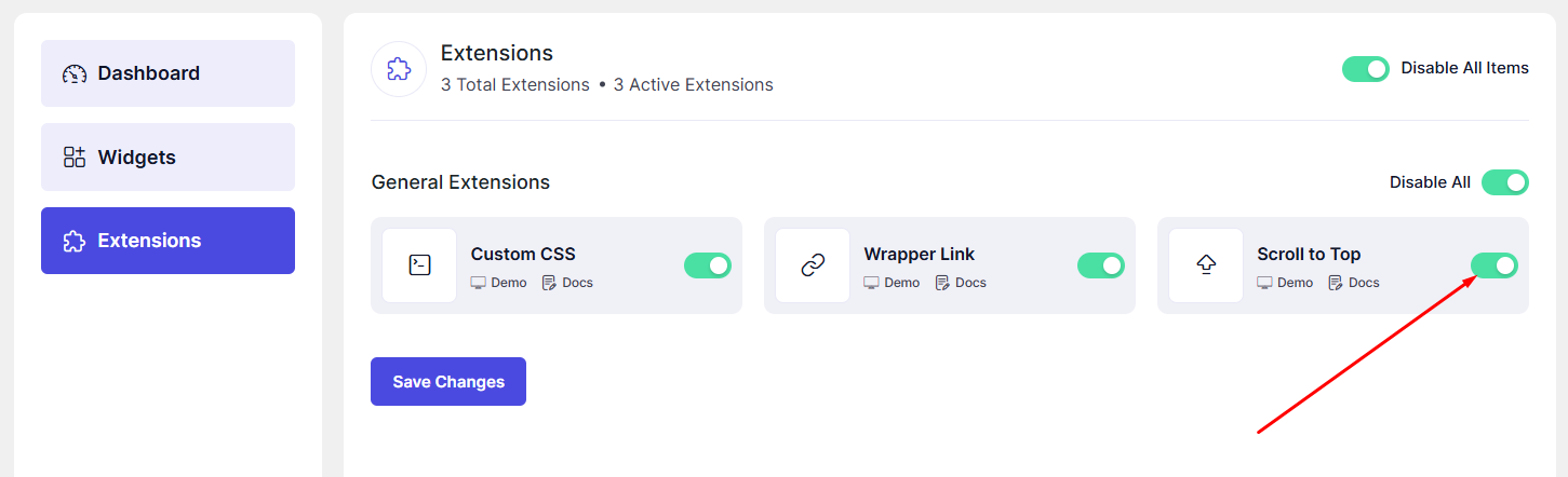 The Scroll to Top extension adds a smooth and user-friendly button that lets visitors quickly return to the top of the page. It improves navigation on long pages and enhances overall user experience.