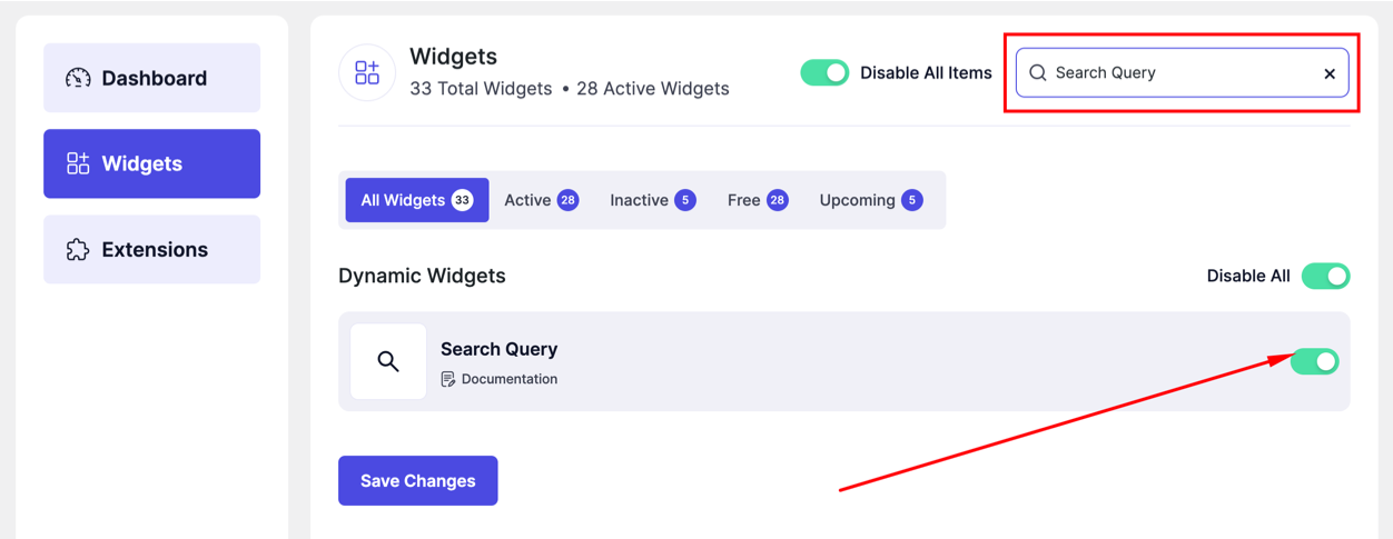 - Find Search Query in the widget list