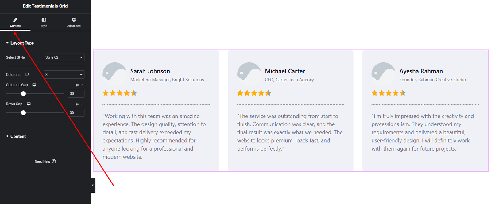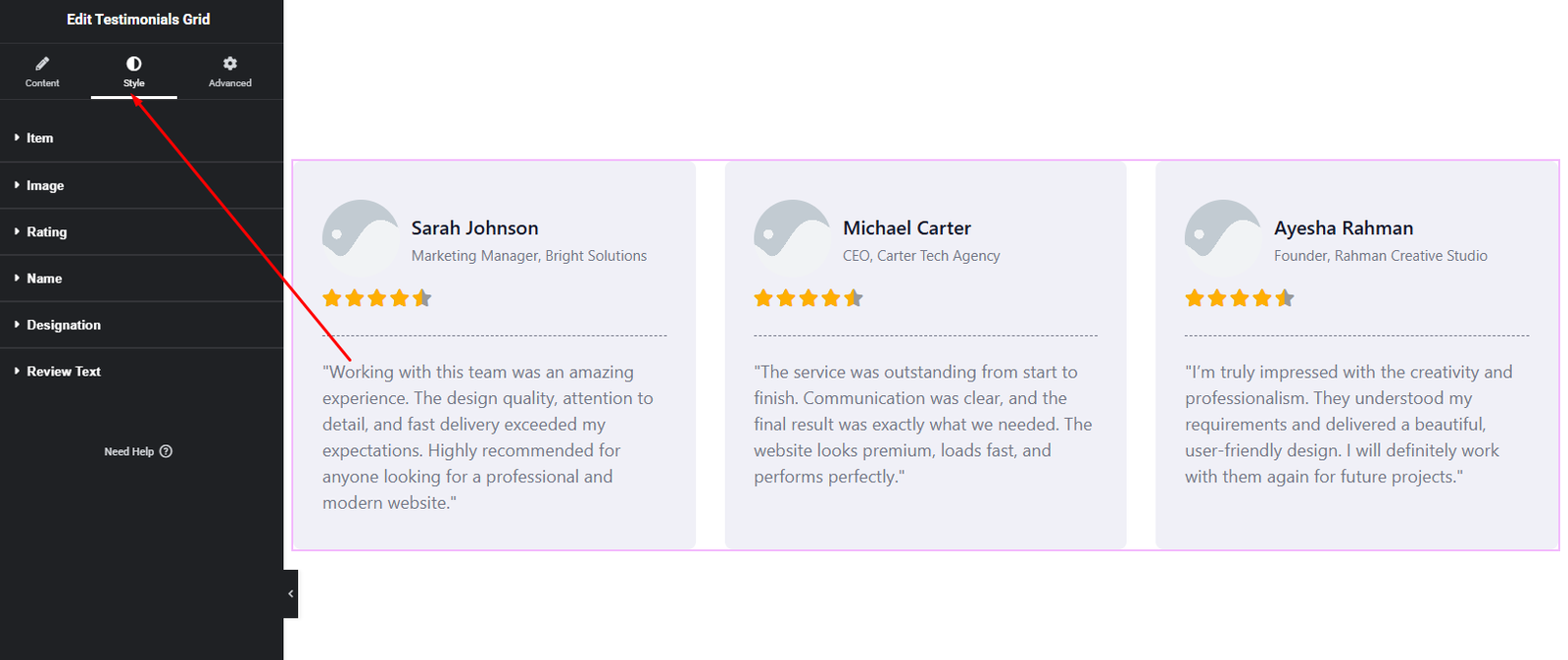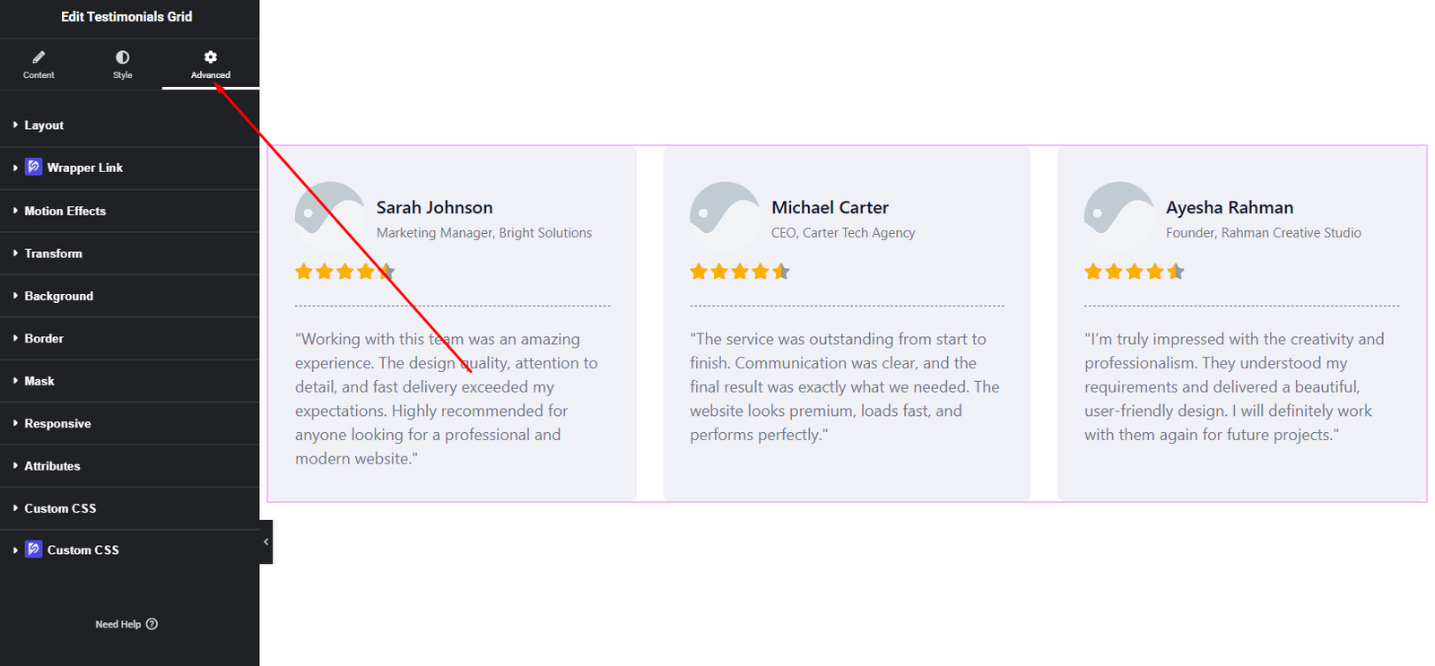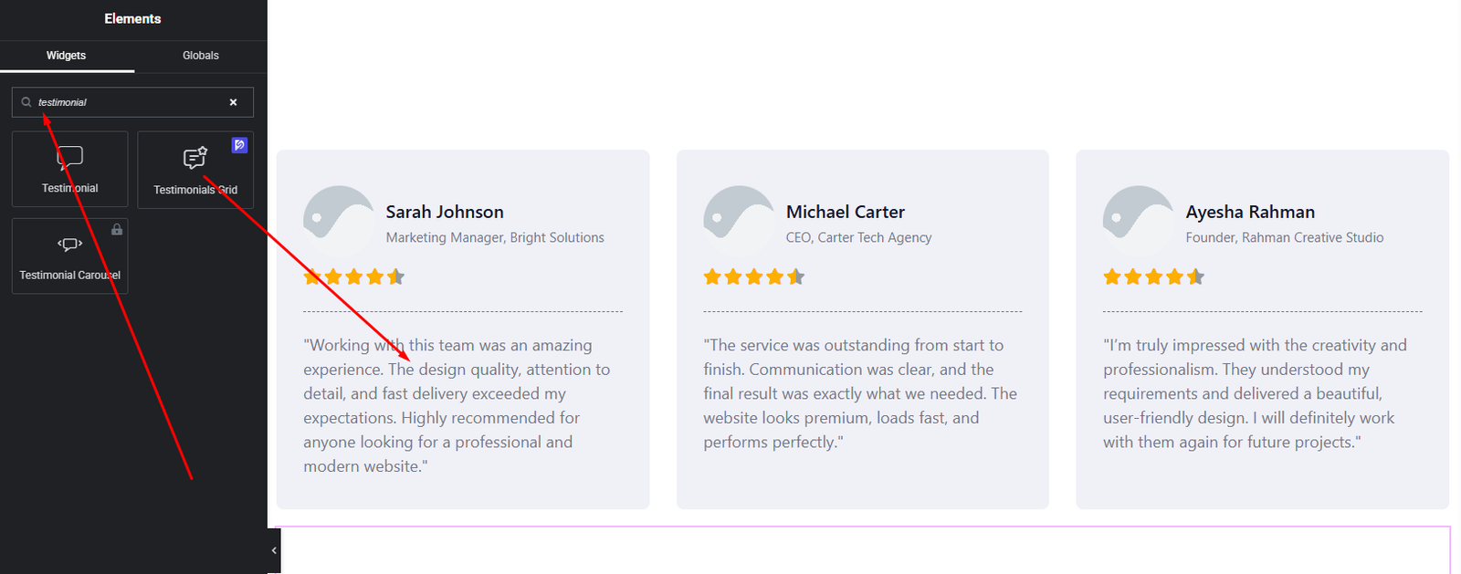 How to Add a Testimonials Grid Widget in Elementor